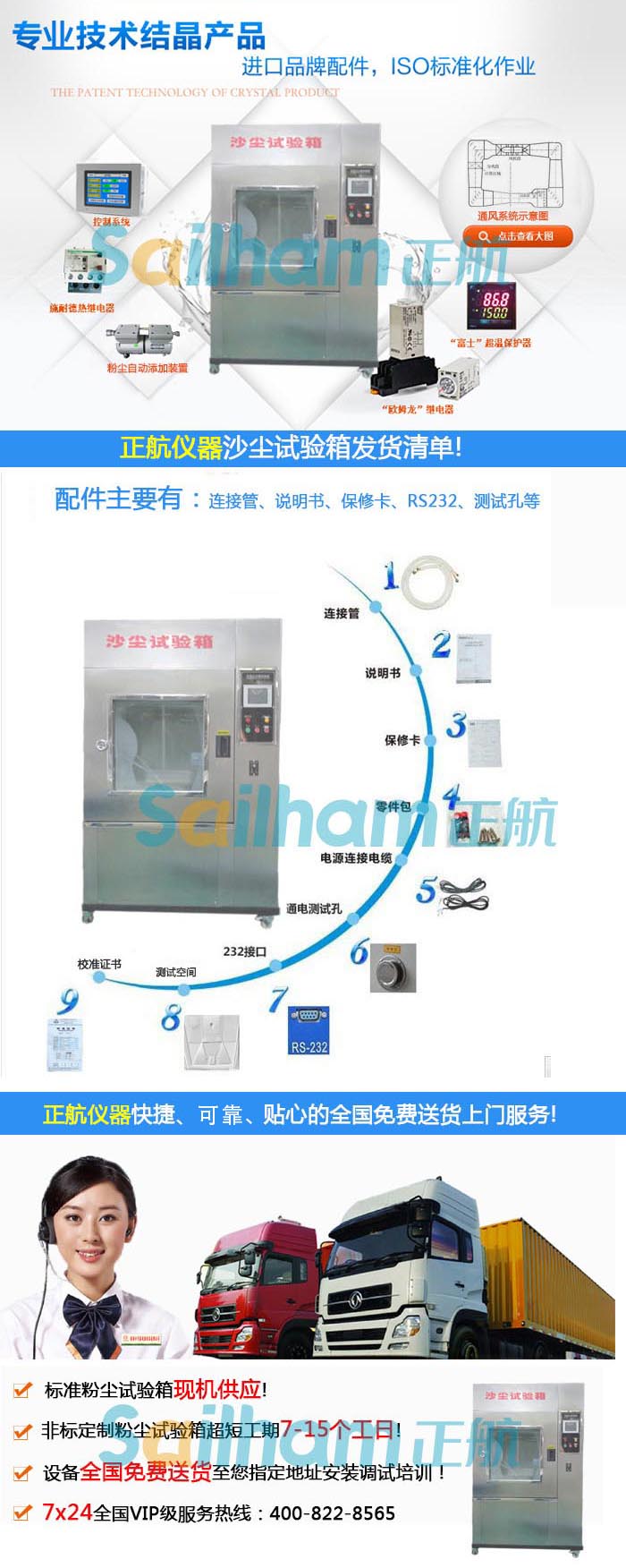 我公司是一家集科研、設(shè)計(jì)及制造各類模擬環(huán)境試驗(yàn)設(shè)備的專業(yè)性生產(chǎn)企業(yè)。在產(chǎn)品的研發(fā)、設(shè)計(jì)、制造、質(zhì)量控制及服務(wù)協(xié)調(diào)方面,始終保持高效運(yùn)作。>主打產(chǎn)品▲高低溫試驗(yàn)箱¦冷熱沖擊試驗(yàn)機(jī)¦ip5耐塵試驗(yàn)箱¦ip6淋雨試驗(yàn)箱¦10多年來,憑借著精湛專業(yè)制造經(jīng)驗(yàn),完善的售后服務(wù),正航儀器成為精密檢測儀器行業(yè)領(lǐng)軍者。專業(yè)提供定制非標(biāo)實(shí)驗(yàn)設(shè)備和實(shí)驗(yàn)室整體設(shè)計(jì)方案〗__熱線:15899697899 電話:0769-89876378 傳真:0769-22400804
